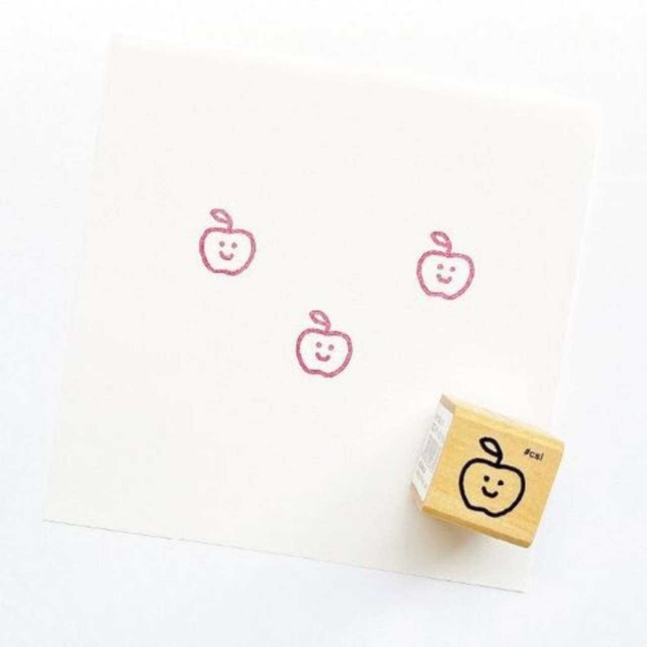 いろんなモチーフをいろんな絵柄でスタンプにした、木製ラバースタンプのシリーズです。ミニサイズのリンゴ柄など